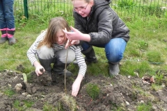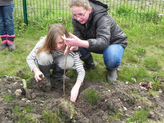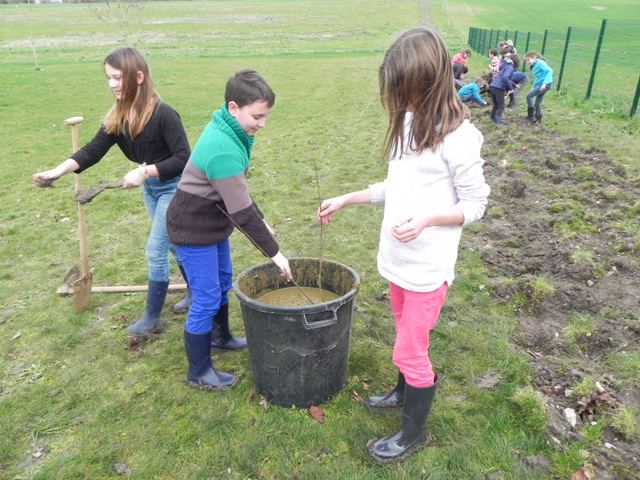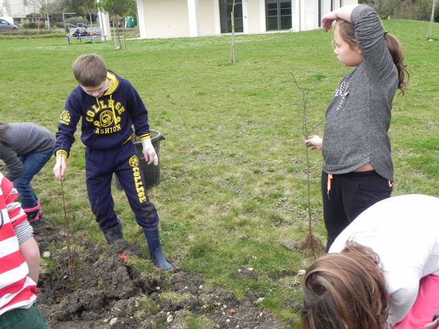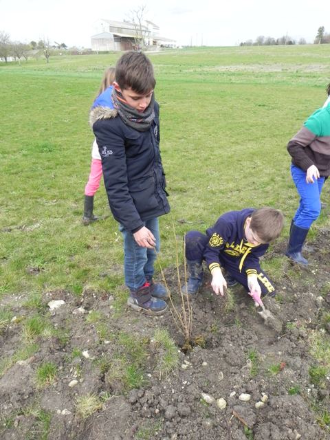 Nous allons planter des arbres fruitiers pour que les enfants puissent en profiter à la saison, des haies autour du terrain ce qui favorisera le refuge des oiseaux, des insectes et autres et des arbres de hauts jet comme des noyers.