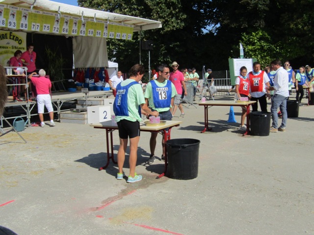 Le week-end commençait au plus mal pour notre équipe avec l’absence de la personne prévue. Comment trouvez une nouvelle partenaire à Max en 5 minutes? Océane, présente sur la foire, s’improvise avec un gros problème : le poids de la brouette chargée est aussi lourde qu’elle. Malgré cet handicap, les 2 participants arrivent à emmener la brouette au bout du parcours et se classent 15ème sur 16.