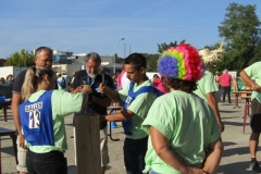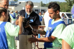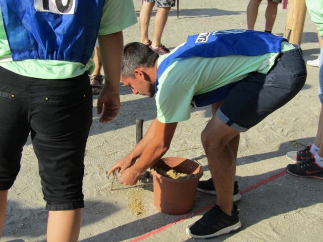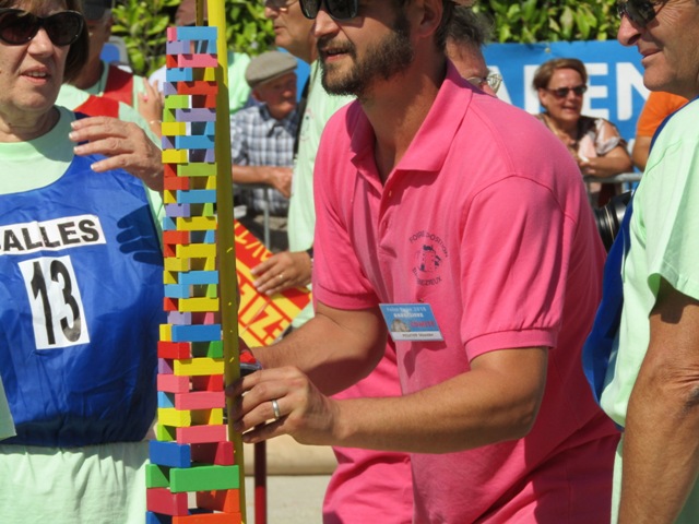 Nos élus ne veulent pas décevoir les autres membres de l’équipe qui ont donné le maximum depuis le début du week-end. Ils sont très concentrés mais surtout connaissent la technique à adopter pour créer une pyramide haute. Ils se sont entraînés pendant la semaine. Le jeu démarre et avec beaucoup de calme et malgré des rafales de vent, nos représentants réussissent une pyramide de 80 centimètres. Ils terminent 4ème de ce jeu à quelques centimètres du vainqueur.