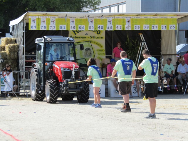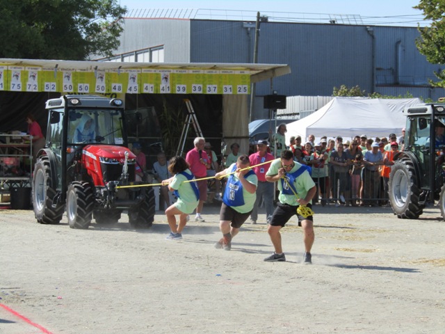 L’exercice semble simple mais essayer pour voir. Place aux hommes forts de la commune : Maxime, Jordan et Marjorie vont tirer ce tracteur en moins de 26 secondes. Un exploit incroyable qui les placent à la 3ème place.