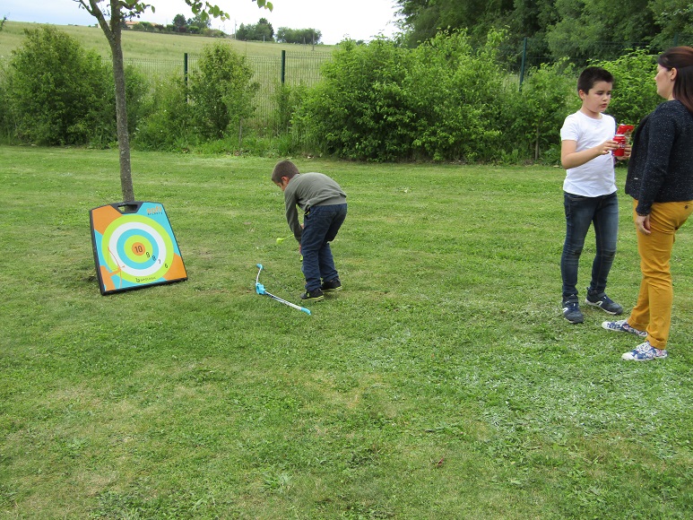 Les enfants ont pu profiter de différents jeux autour de la salle des fêtes (pêche aux canards, tir à l’arc, course, twirling…).