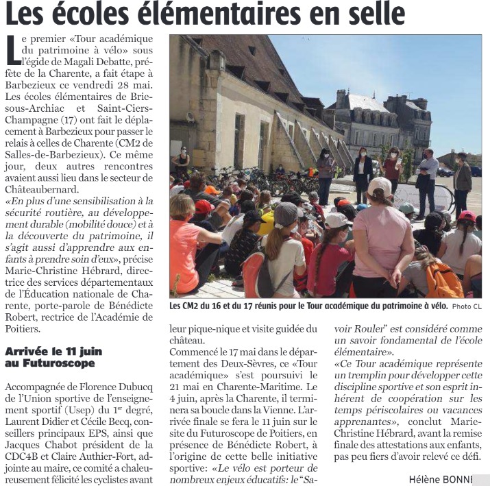 Les enfants de l’école primaire (CM1-CM2) de Salles de Barbezieux ont été à vélo au château de Barbezieux pour représenter la Charente au premier « Tour académique du patrimoine en vélo ».