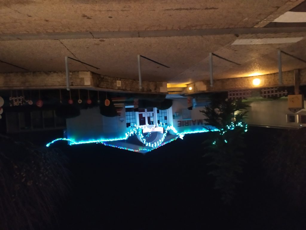 celles électriques (guirlandes, traineau) accrochées à la mairie ou dans les arbres devant la mairie