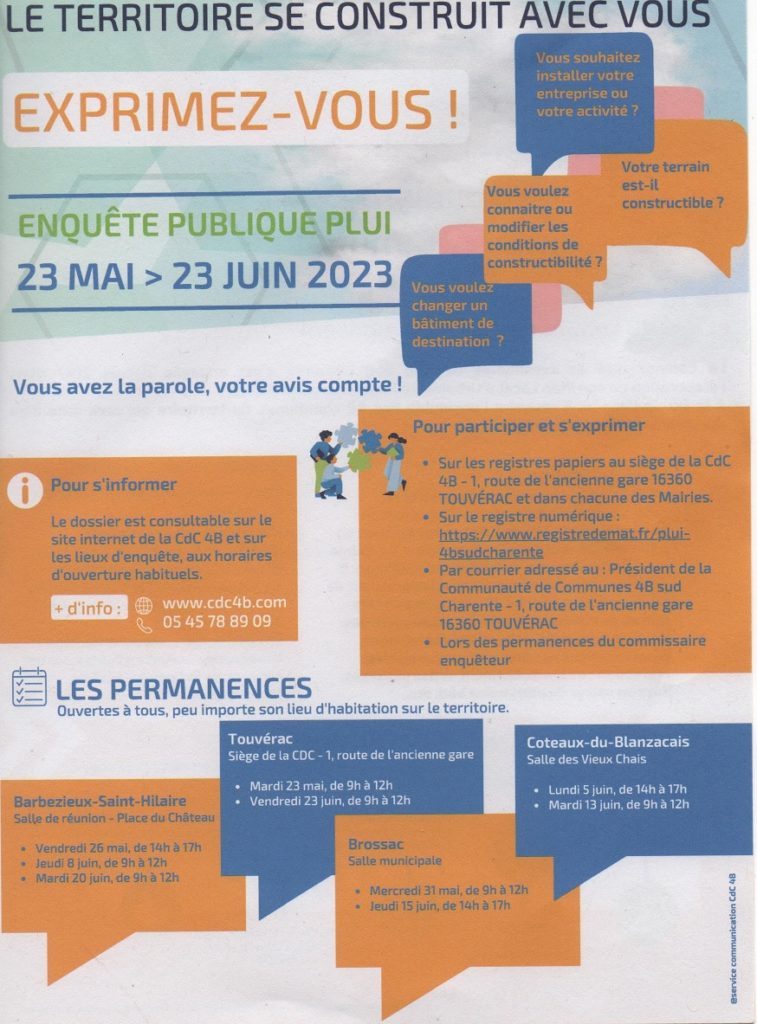 L’enquête publique permet aux habitants des 4B (et autres organismes) de participer et de s’exprimer sur le PLUI des 4B.