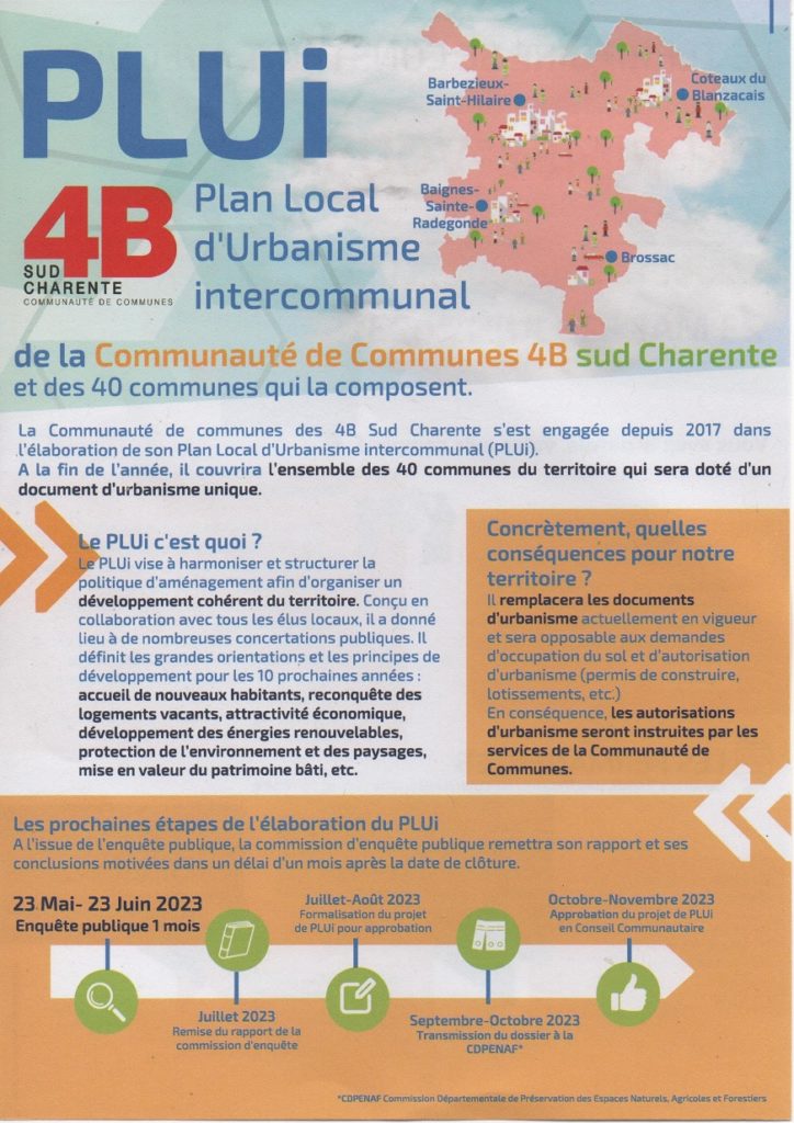 Notre commune est concernée par le PLUI comme toutes les autres communes. Toutes les informations sur le PLUI sont consultables sur le site de la CDC des 4B : www.cdc4B.com ou sur les flyers ci-dessous.