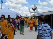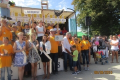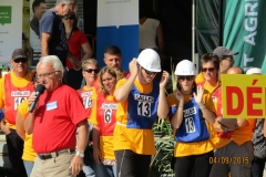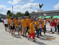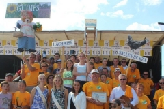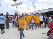 Les 27 participants de Salles de Barbezieux font le tour de la foire pour terminer leur trajet sur le boulodrome. Notre pancarte, surmontée d’une belle poule de Barbezieux, n’a pas remporté le prix de la plus belle pancarte.