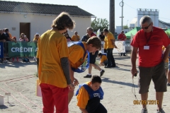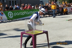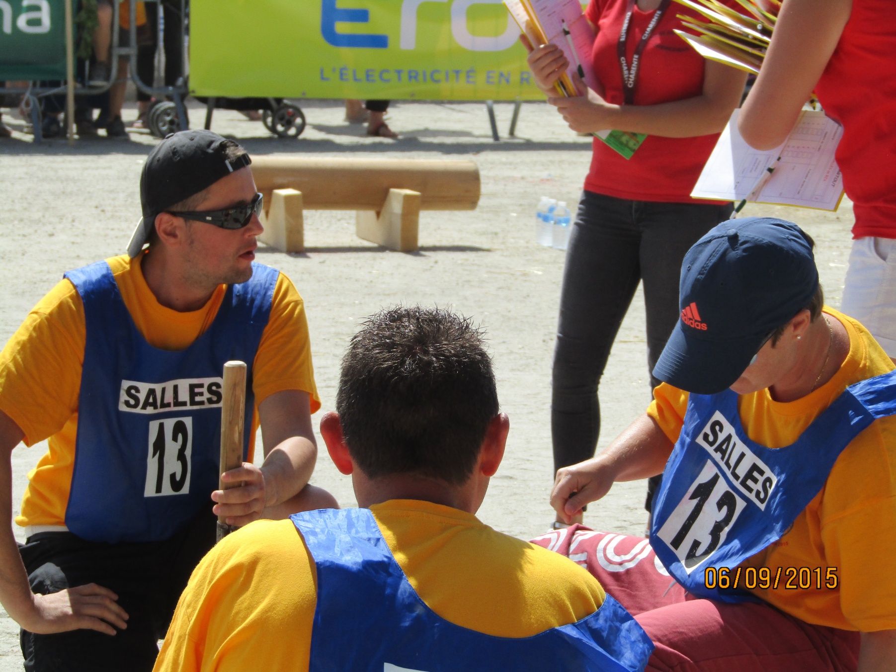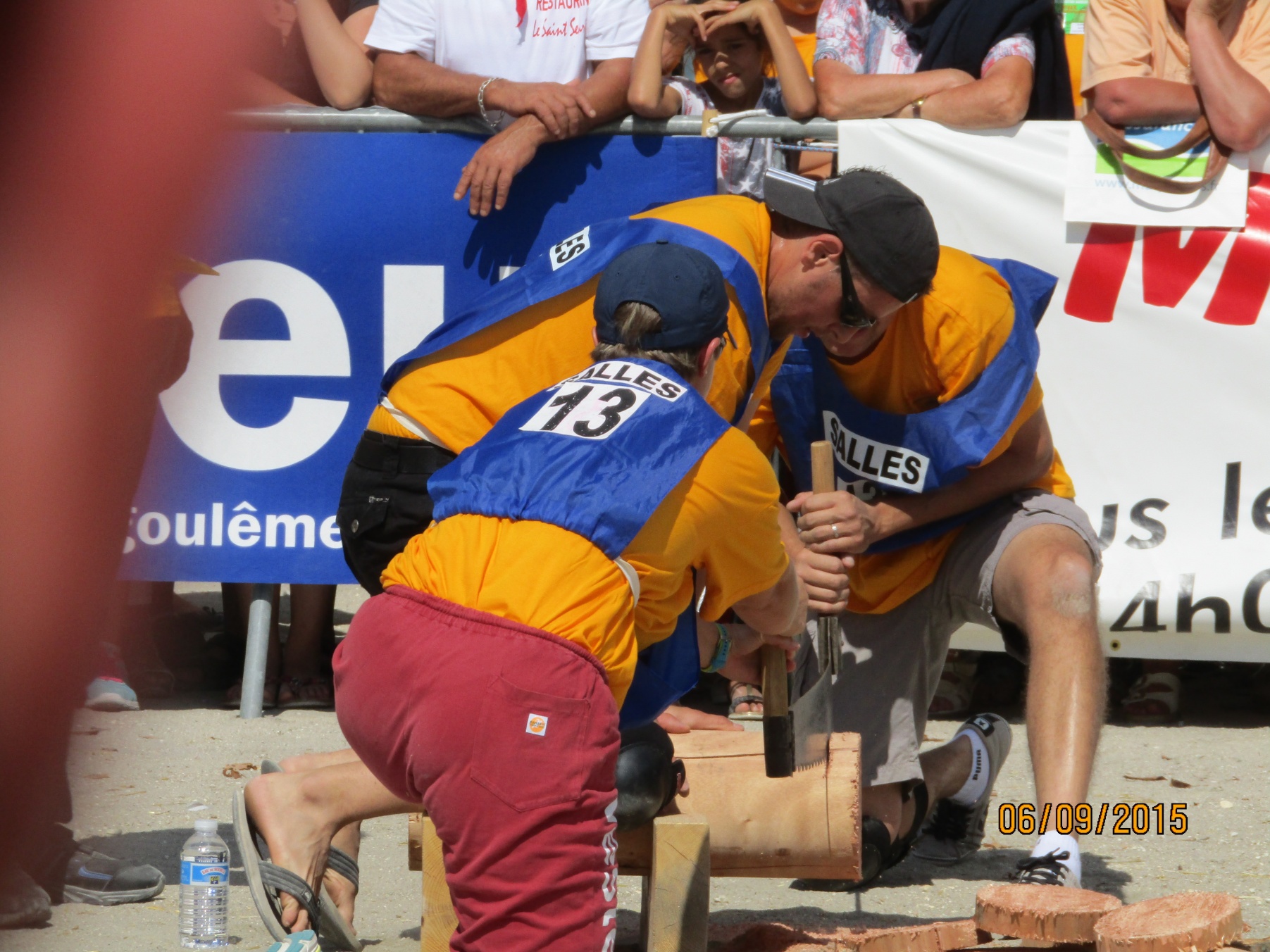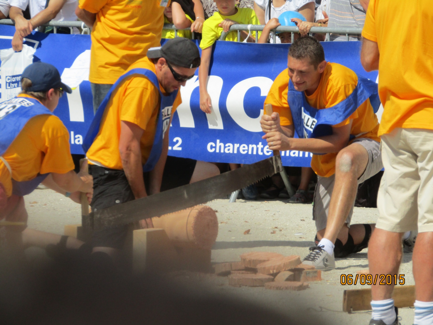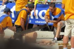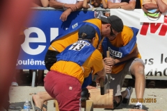 Cette équipe très motivée a probablement le challenge le plus physique du week-end. La chaleur et la durée du jeu (10 minutes) vont accentuer l’effort. Les encouragements de tous les autres concurrents va transcender nos concurrents qui vont réussir la performance de couper 11 rondelles en 10 minutes (la dernière a été coupée à bout de force). L’équipe termine 4ème de cette épreuve.