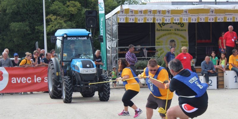 C’est simple pour ces 3 colosses : 20 secondes et votre tracteur se retrouve 20 mètres plus loin. Il s’agit simplement du record absolu de ce jeu qui existe depuis 12 ans. Cette équipe a gagné haut la main son épreuve et relance totalement Salles de Barbezieux qui avait judicieusement joué son jocker (doublement des points).