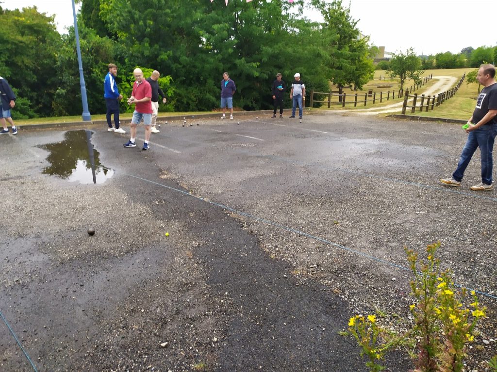 Les organisateurs regardaient le ciel avec une certaine crainte : un orage important a éclaté le samedi 19 juillet à 7h30 mais il n’a pas refroidi les pétanqueurs. 32 équipes avaient fait le déplacement pour de belles rencontres certes un peu humides. La remise des prix s’est déroulée vers midi avec de beaux vainqueurs et un jeune de 6 ans qui s’est fait remarquer par son niveau.