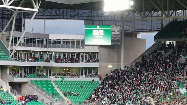 45 personnes étaient au rendez-vous le samedi matin pour ce déplacement. Après plusieurs heures de bus, l’arrivée dans le magnifique stade de Geoffreoy-Guichard se déroula vers 15h30 le samedi après-midi. La foule était au rendez-vous avec 30 878 spectateurs.