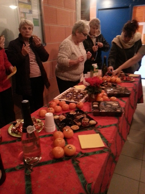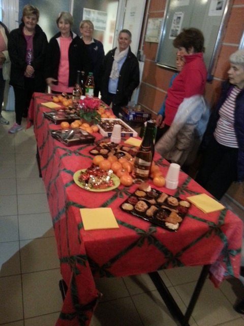 Beaucoup de gâteaux, chocolats étaient à disposition pour célébrer la fin d’année. Les calories avaient été éliminées juste avant avec une dernière séance de gymnastique.