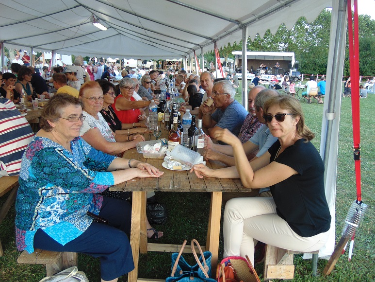 Vers 18 heures, le groupe a pu déguster les différents produits locaux lors de l’apéritif puis a profité d’un repas très bien organisé et animé par différents groupes de musique. Un joli feu d’artifice a clôturé cette journée. Le retour s’est déroulé un peu après minuit.