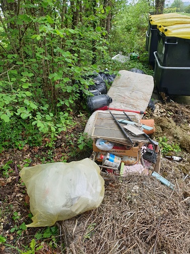 Cette photo a été prise ce jour au Bois du Luc. Un matelas, une échelle, de nombreuses autres déchets ont été déposés à côté des poubelles et dans le bois. C’est inadmissible comme attitude pour l’environnement et le respect des autres.