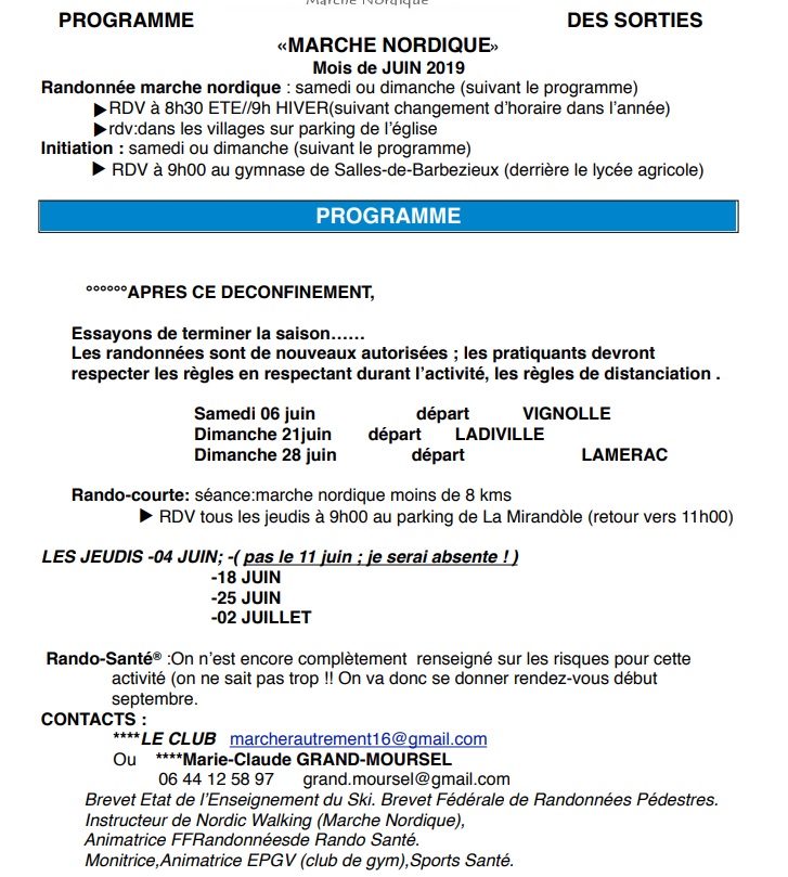 L’association de marche de Salles de Barbezieux « Marcher Autrement » reprend ses activités.