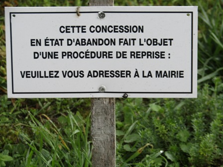 Les concessions à l’abandon dans le cimetière seront récupérées par la commune à la fin 2016. Depuis trois ans, les pancartes des concessions abandonnées ont été mises dans le cimetière. Il ne reste plus que deux mois pour se faire connaitre.