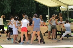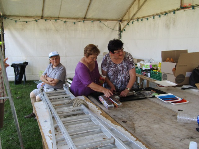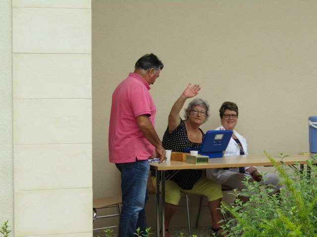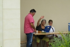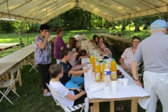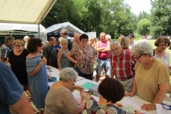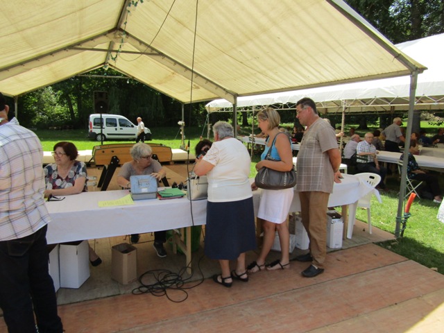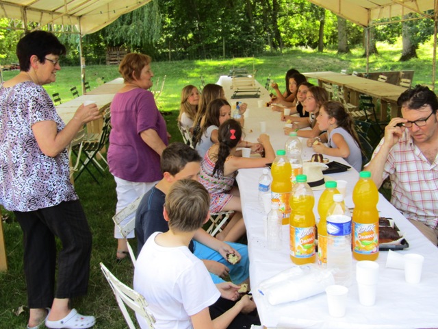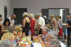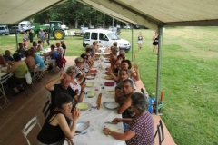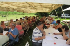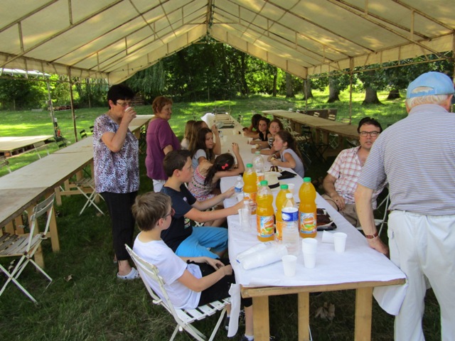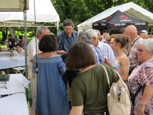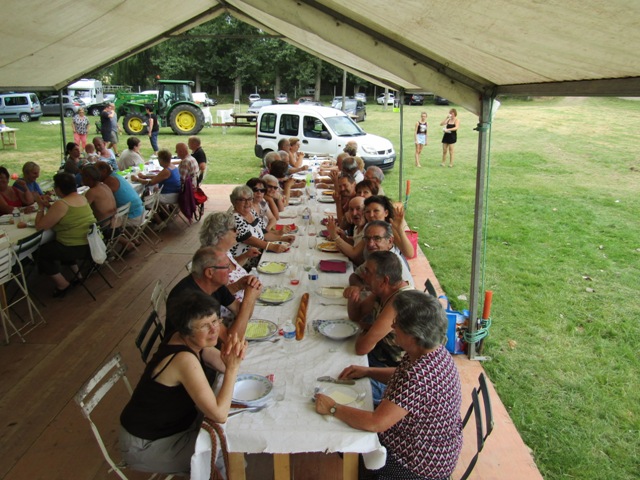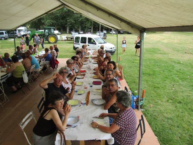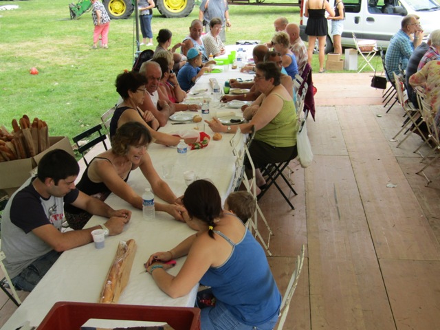 Après un dimanche matin d’efforts à ranger, les nombreux bénévoles du Comité des fêtes, ainsi que quelques personnes de la commune qui ont souhaité participer à cette grande rencontre, ont pu déguster les différents produits finalement fournis par le Comité des fêtes : sangria, charcuterie, paëlla, saucisses, ventrêches, fromage et gâteau. Un orage (très humide) en début d’après-midi a écourté ce moment de convivialité.