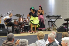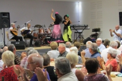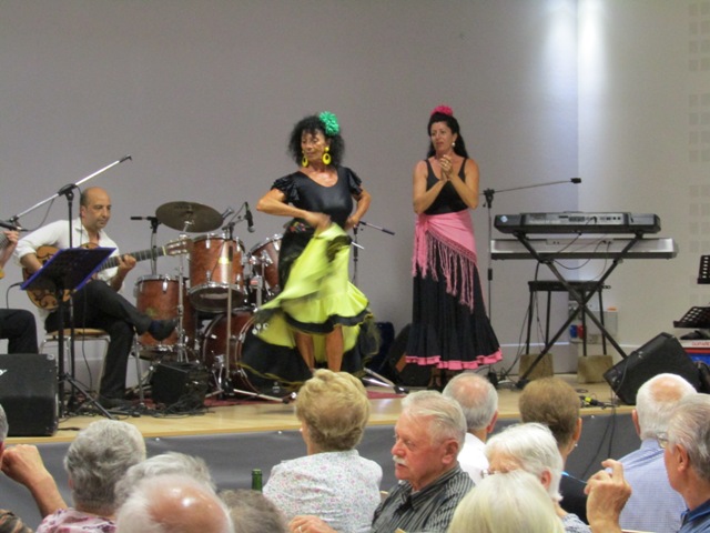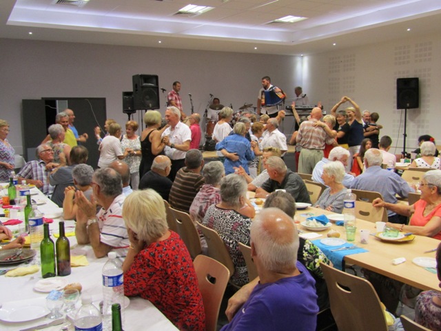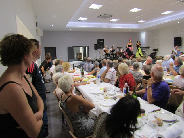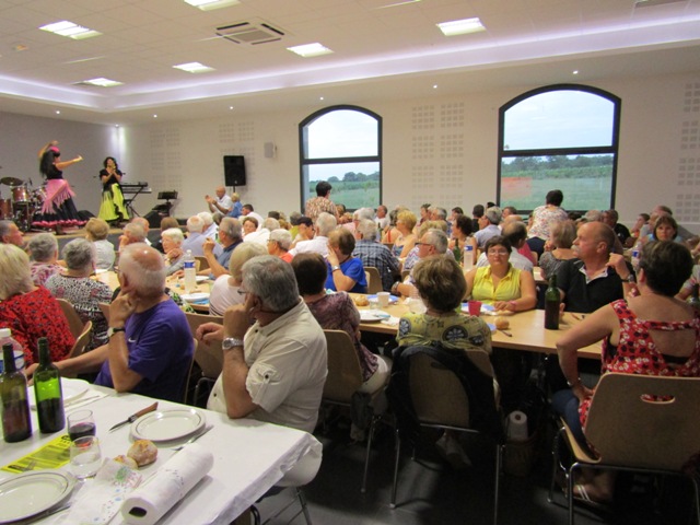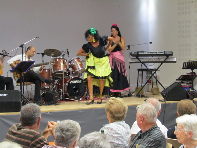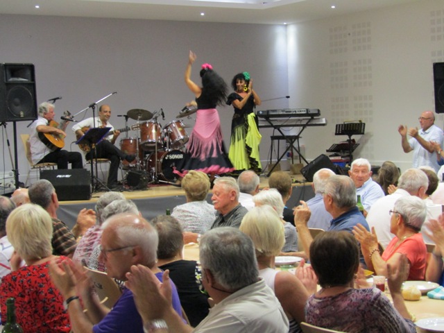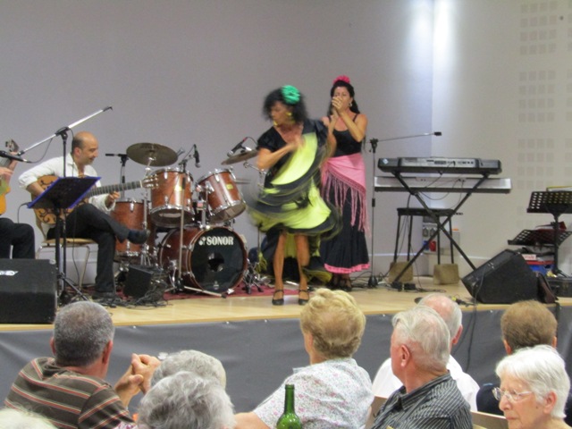 Malgré une contrainte énorme (déménagement du lieu du repas à la dernière minute pour des raisons météorologiques=>alerte orange « Orage et vent violent »), le repas et l’animation flamenco ont pu se dérouler normalement mais dans la salle polyvalente de la commune.