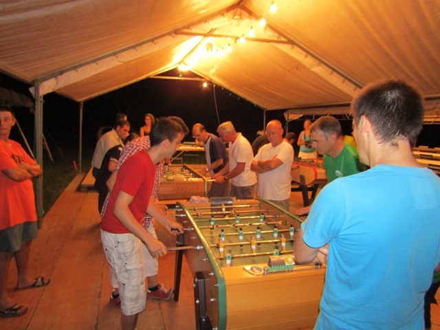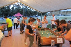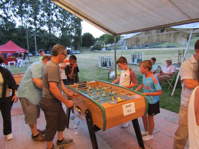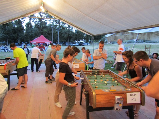 Le 2ème tournoi de baby-foot de Salles de Barbezieux était organisé le vendredi soir. Vingt quatre équipes (dont 11 venant de différents clubs de la Nouvelle Aquitaine) étaient au rendez-vous. Après une phase de poule qui a donné de belles parties (5 matchs de 8 minutes par équipe), la phase d’élimination directe a commencé vers 23 heures.