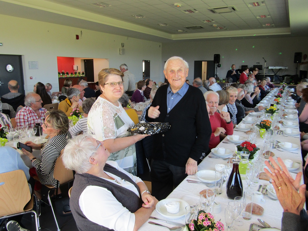 La doyenne de la commune (Mme NAU Liliane) a reçu une plante et le doyen de la commune présent au repas (M. FEUILLET Jean) a reçu une boite de chocolats.