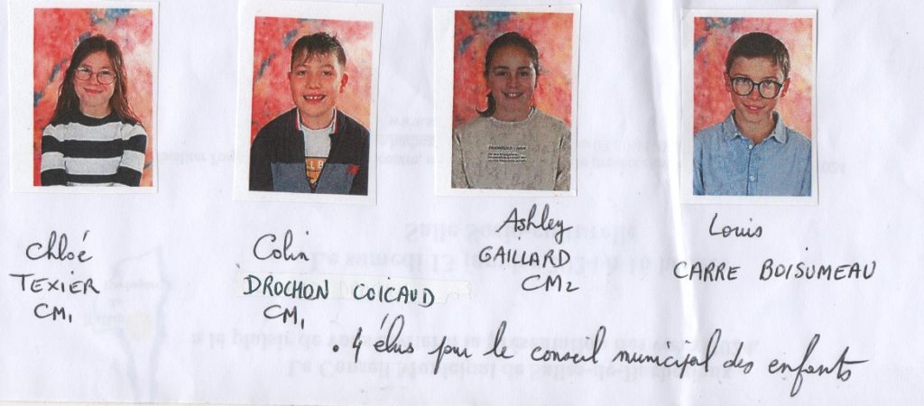 Le conseil des jeunes est maintenant au complet avec 8 jeunes : Louis CARRE-BOISUMEAU / Colin DROCHON-COICAUD / Ashley GAILLARD / Chloé TEXIER pour l’école primaire et José LUCAS / Maëlle PLATEL-BAYONNE / Tallia PELLERIN / Justine WAYVE-BRILLOUET pour le lycée agricole.