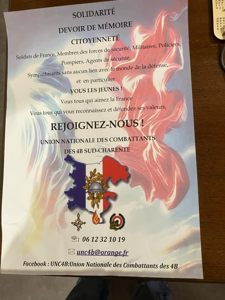 Les actualités municipales L’UNION NATIONALE DES COMBATTANTS DES 4B SUD CHARENTE RECHERCHE DES SYMPATHISANTS 5 octobre 2024 sallesdebarbezieux Laisser un commentaire N’hésitez pas à vous rapprocher de l’association pour obtenir des informations (coordonnées ci-dessous).