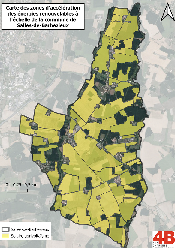 La plupart des énergies renouvelables ne sont pas concernées par les ZAENR (solaire sur les toitures, biogaz, éolien..). Au niveau de Salles de Barbezieux, la seule énergie renouvelable concernée est le Solaire agrivoltaïsme qui peut être installé (énergie solaire avec un projet agricole) sur la plupart des terres agricoles à Salles de Barbezieux.