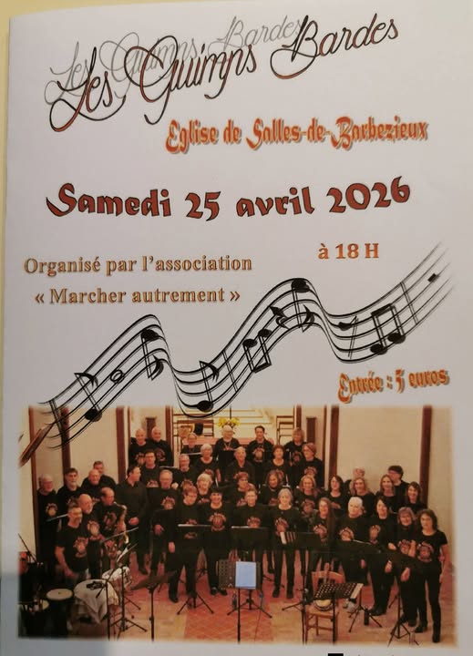 Les manifestations à venir Concert « Les Guimps Bardes’ organisé par Marcher Autrement le 25 avril 26 février 2026 sallesdebarbezieux Laisser un commentaire On vous attend nombreux au concert le 25 avril en l’église de Salles de Barbezieux….