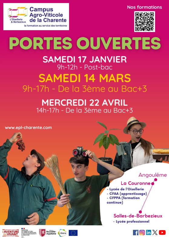 N’hésitez pas à venir visiter le lycée agricole de Salles de Barbezieux le 14 mars avec ses nombreuses formations agricoles ou service à la personne…..