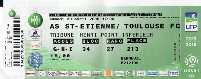 Le club de football de Berneuil-Salles de Barbezieux organisait le 30 avril 2016 un voyage à Saint-Etienne dans le stade mythique de Geoffreoy-Guichard pour voir le match de Ligue 1 opposant :