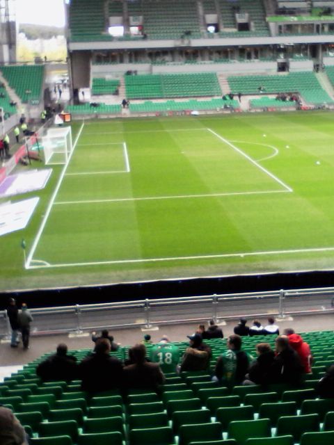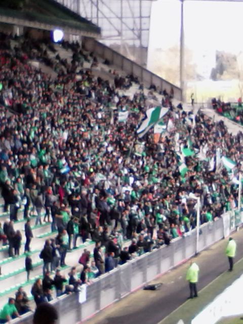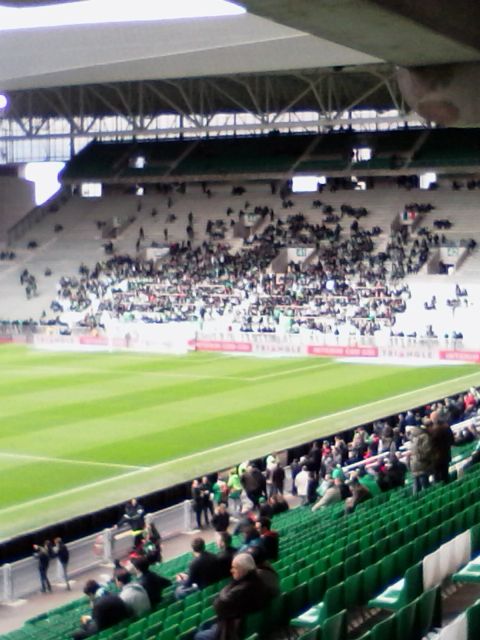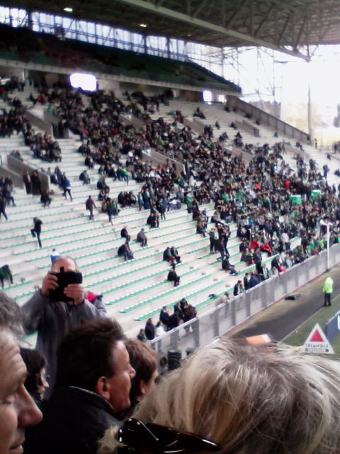 Le match débuta bien avec 15 minutes de folie : 3 actions nettes pour Toulouse, un penalty stoppé par le gardien stéphanois en état de grâce : Mr RUFFIER et 2 buts refusés pour Toulouse. Tout le monde était heureux et s’attendait à un match fantastique mais la réalité sera différente : des toulousains qui dominaient mais de façon stérile et des stéphanois inexistants pendant tout le match. Le match se finit sur un 0 à 0. Heureusement, l’ambiance dans le stade était énorme : avec 2 kops qui chantèrent de la première à la dernière minute.