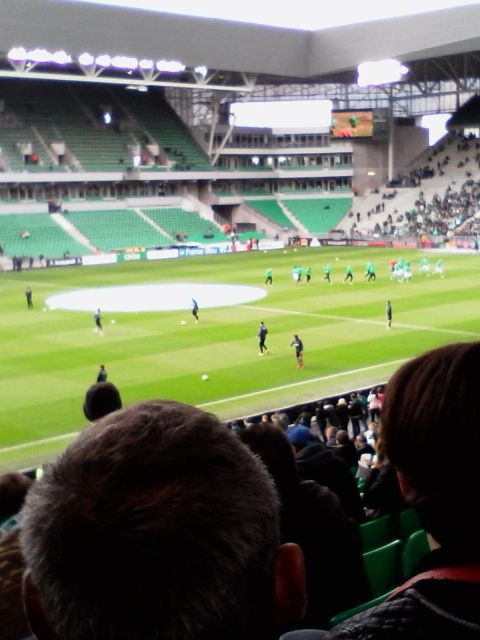 45 personnes étaient au rendez-vous le samedi matin pour ce déplacement. Après plusieurs heures de bus, l’arrivée dans le magnifique stade de Geoffreoy-Guichard se déroula vers 15h30 le samedi après-midi. La foule était au rendez-vous avec 30 878 spectateurs.