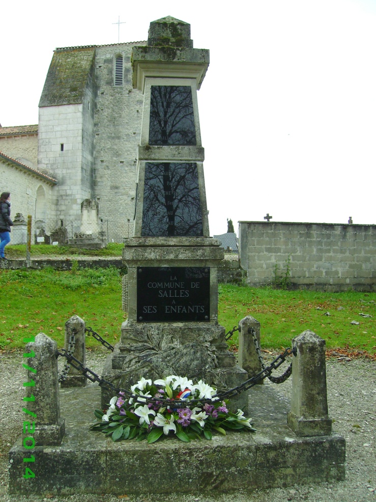La population etait invitée à un dépot de gerbe au monument aux morts de Salles de Barbezieux (face à l’église) le mardi 11 novembre à 11 heures 30.