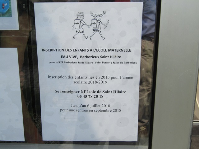 Les enfants nés en 2015 peuvent s’inscrire pour la rentrée 2018/2019. Pour cela, il faut se renseigner auprès de l’école de Saint-Hilaire au 05 45 78 20 18.