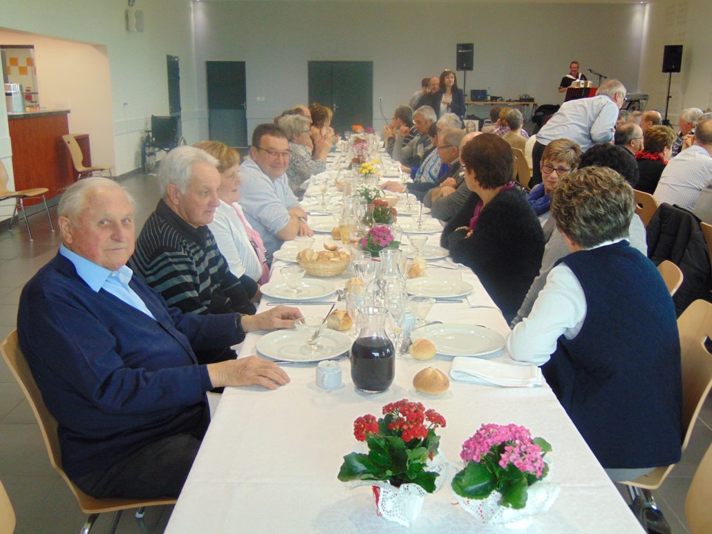 Le repas, préparé par le restaurant « le Chateau », a été apprécié. La doyenne de la commune « Mme RAUTURIER » a reçu un magnifique bouquet de fleurs.